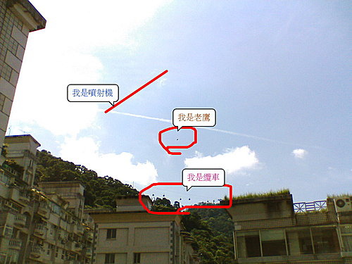看到老鷹了嗎?? 因為用手機拍的只有遠遠的一個黑點.....另外下面有六個小黑點是纜車啦!!